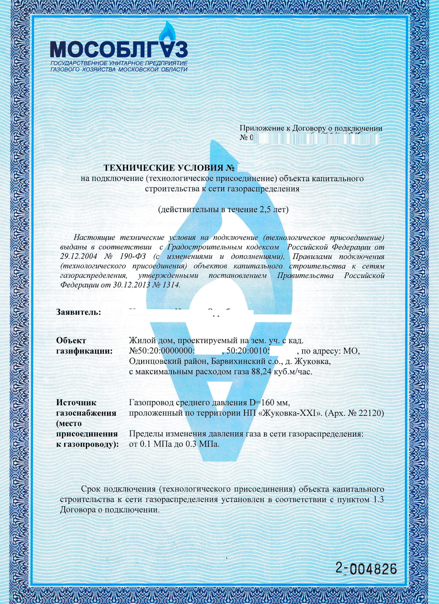 - Точку присоединения к газопроводу